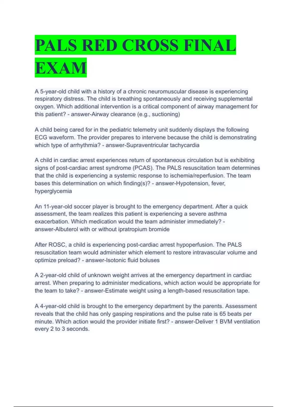AHA PALS EXAM/PALS RED CROSS FINAL EXAM WITH ANSWERS 2022/2023 UPDATE (VERIFIED 100% CORRECT)