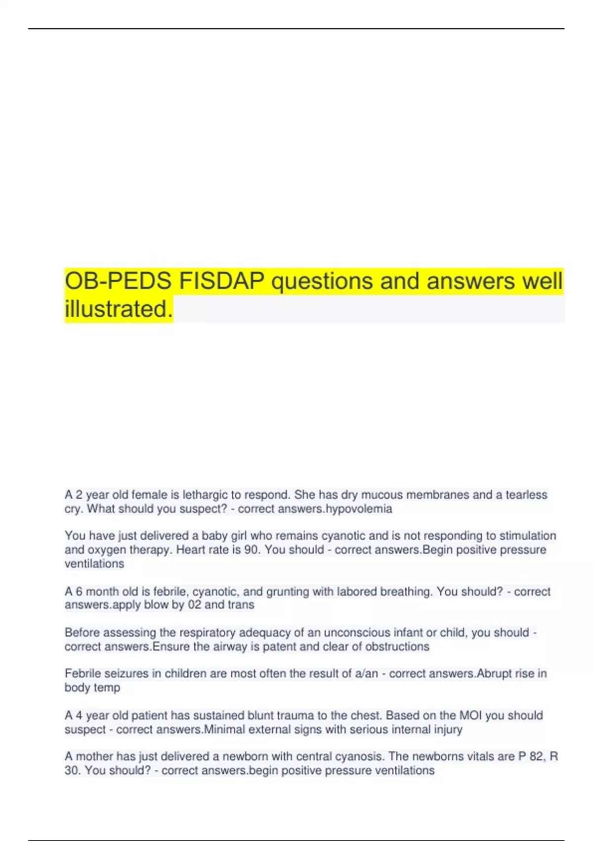 !!! FISDAP EMT OB/GYN and Pediatrics Study Guide questions and answers 100% guaranteed success.Postal Exam questions and answers well illustratedUSPS Exam 421 Window Clerk questions and answers well illustrated..EMT OB/Peds Study Guide questions and answers well illustrated.Fisdap Ob/Gyn and Pediatrics questions and answers latest top score.