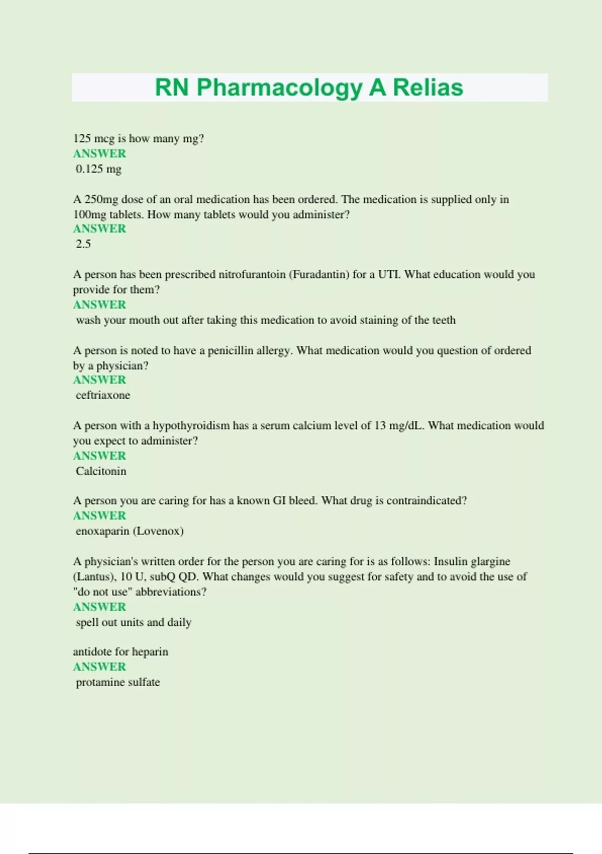 RN Pharmacology A Relias Exam (Latest, 2023/2024) Verified Solutions by Expert