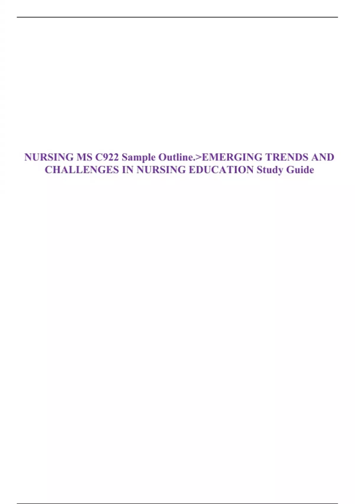 NURSING MS C922 Sample Outline.>EMERGING TRENDS AND CHALLENGES IN NURSING EDUCATION Study Guide