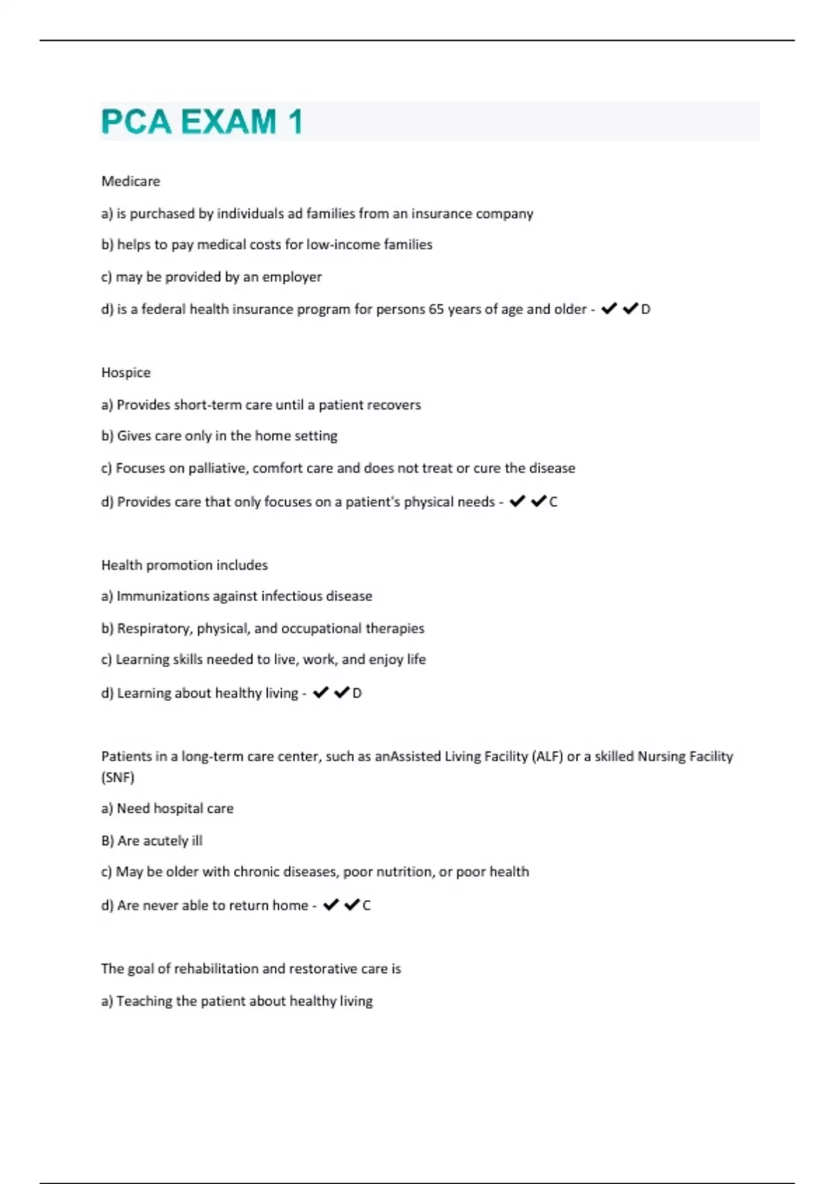 PCA/CFSS Worker Training Exam Questions And Answers!!