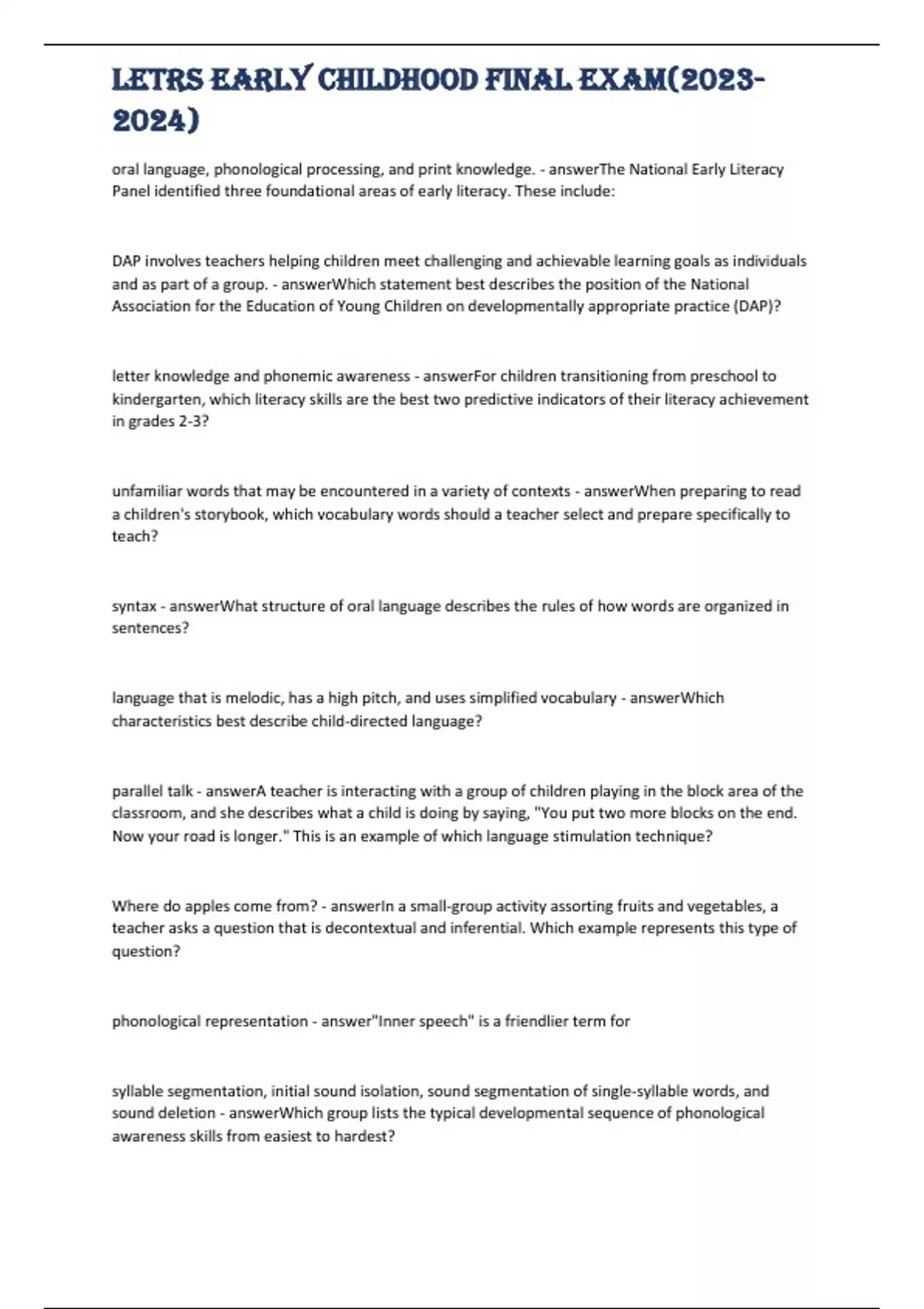 LETRS Early Childhood Final Exam()