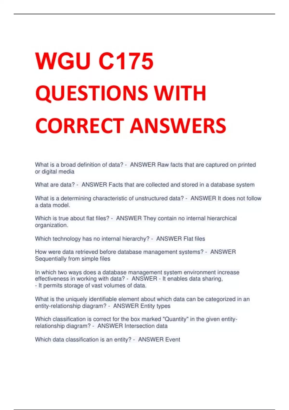 BUNDLE FOR WGU C175 Study Notecards 100% GUARANTEE PASS 2023/2024/NOTCE Exam ACTUAL EXAM REAL EXAM QUESTIONS AND CORRECT DETAILED ANSWERS WITH RATIONALES|ALREADY GRADED A