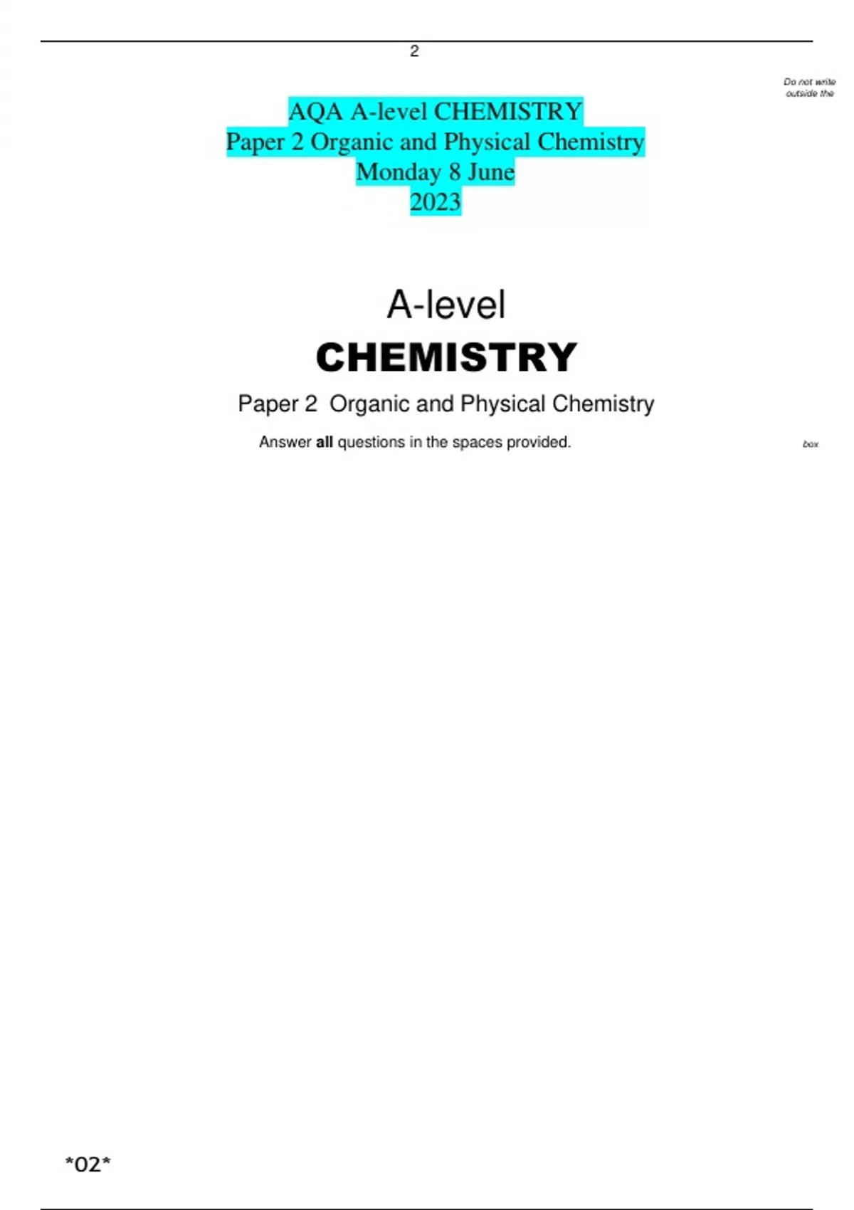 A-LEVEL CHEMISTRY 7405/1 Paper 1 Inorganic and Physical Chemistry MARK SCHEME JUNE 2022