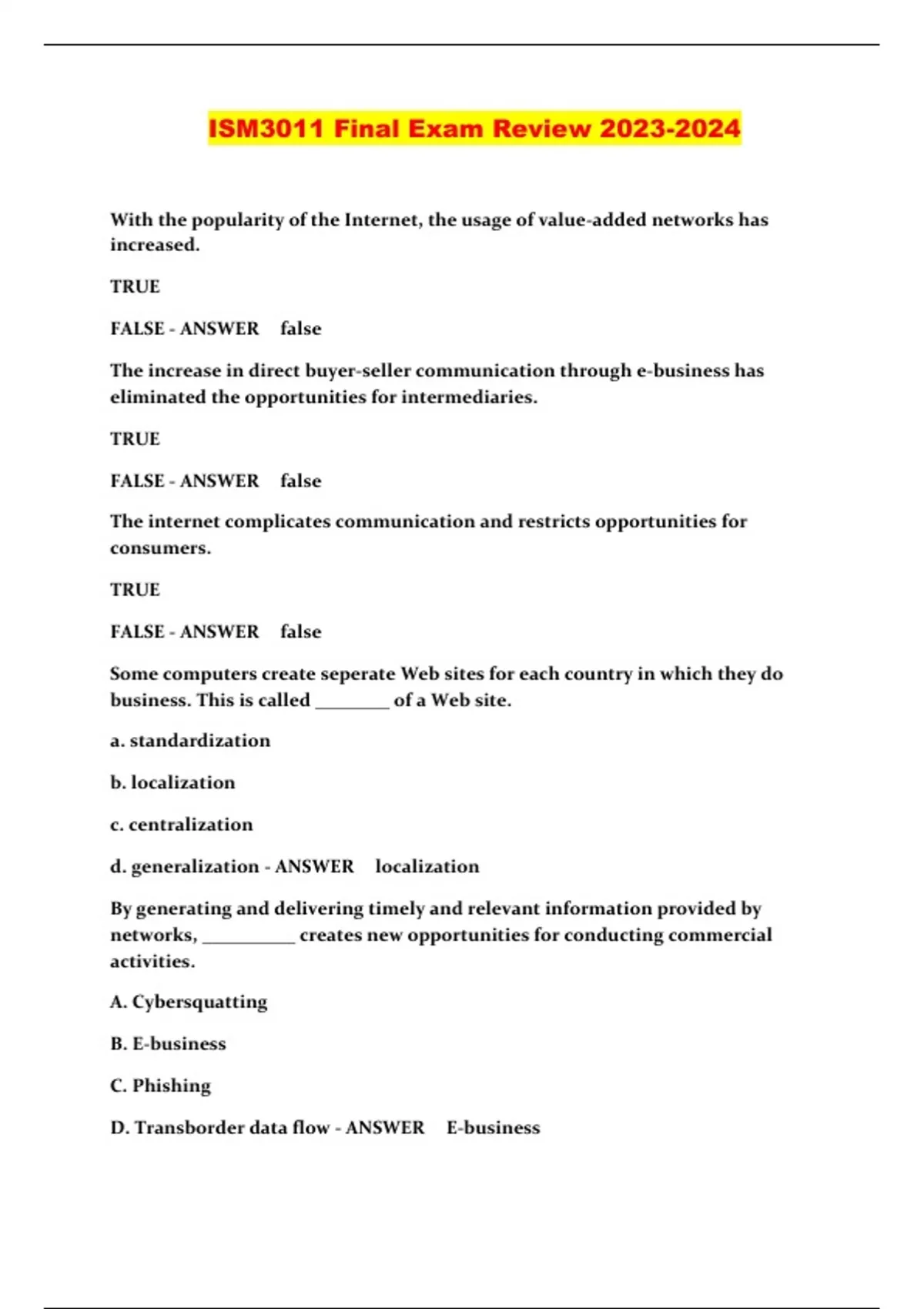 ISM3011/ISM 3011 PACKAGED EXAMS