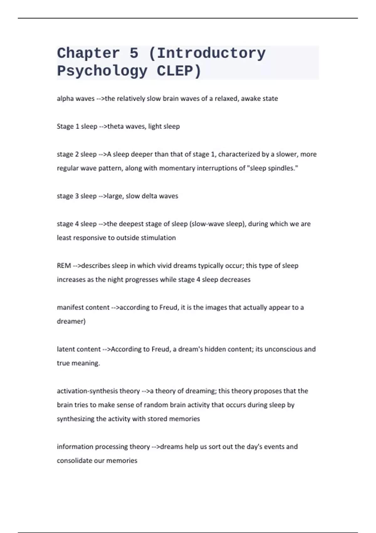 Introductory Psychology. All Study Guides Practice Tests and Exams. All with Correct Answers