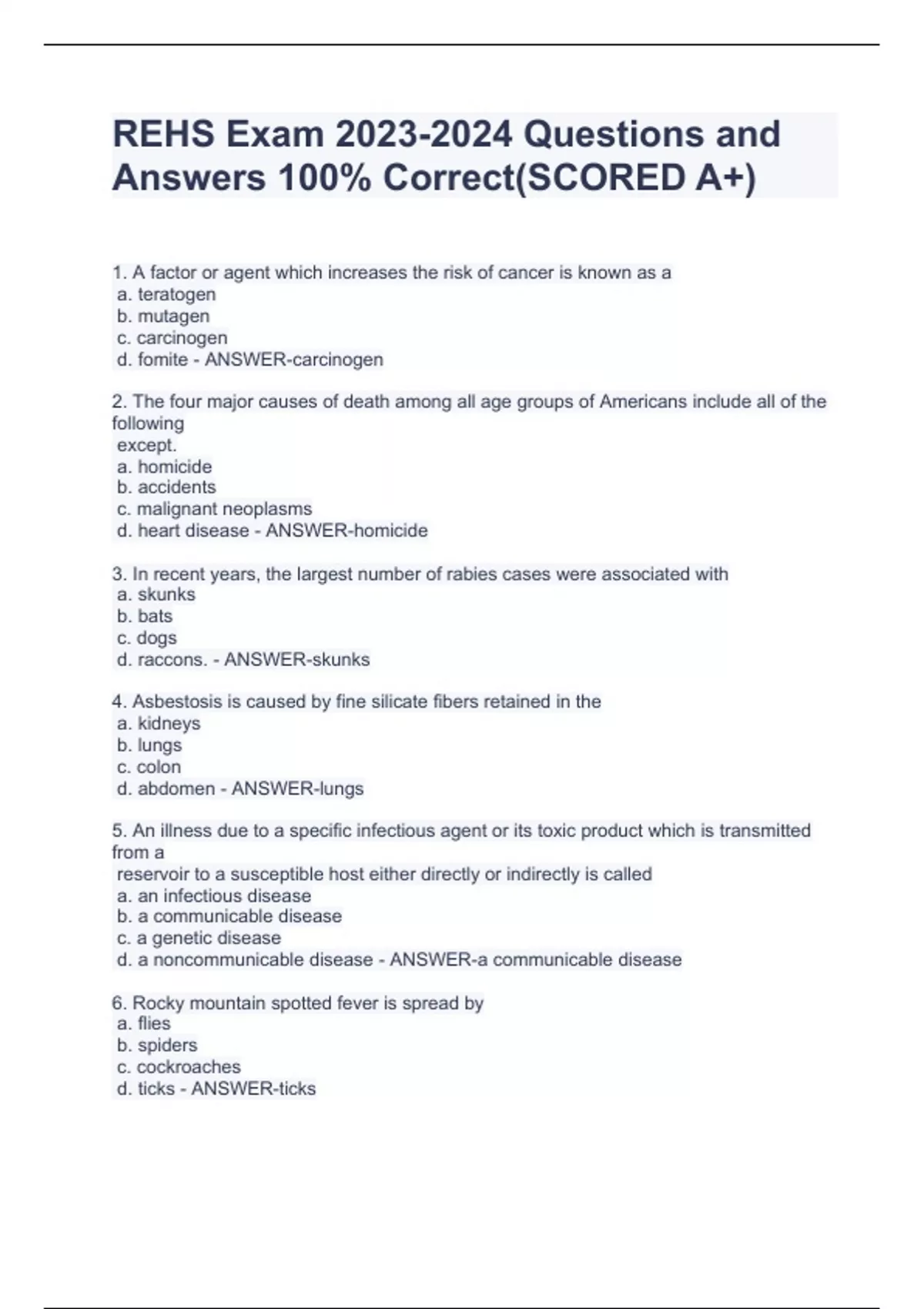 REHS EXAM QUESTIONS AND ANSWERS 100% CORRECT(SCORED A )REHS EXAM QUESTIONS AND ANSWERS 100% CORRECT(SCORED A )REHS EXAM QUESTIONS AND ANSWERS 100% CORRECT(SCORED A )REHS EXAM QUESTIONS AND ANSWERS 100% CORRECT(SCORED A )REHS EXAM QUESTIONS AND ANSWERS 100% CORRECT(SCORED A )REHS EXAM QUESTIONS AND ANSWERS 100% CORRECT(SCORED A )