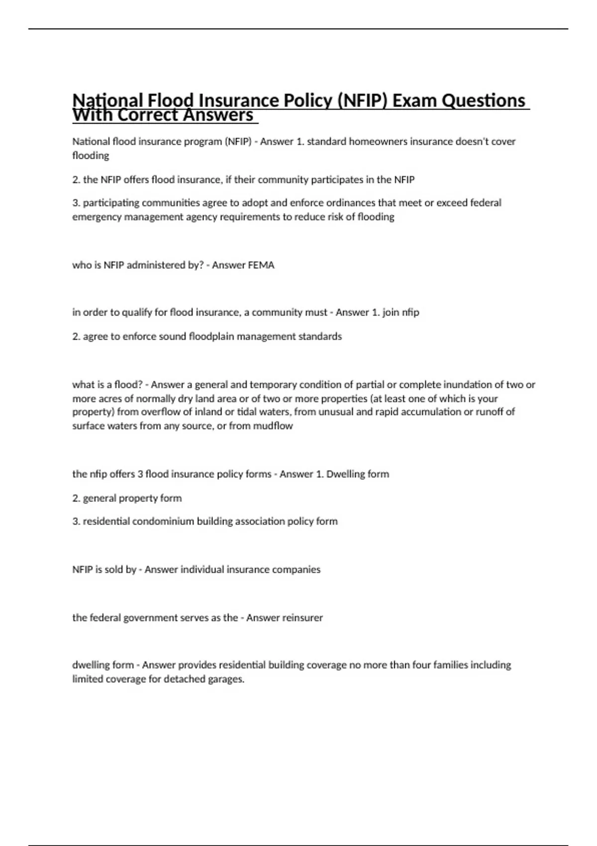 National Flood Insurance Policy (NFIP) Exam Bundle
