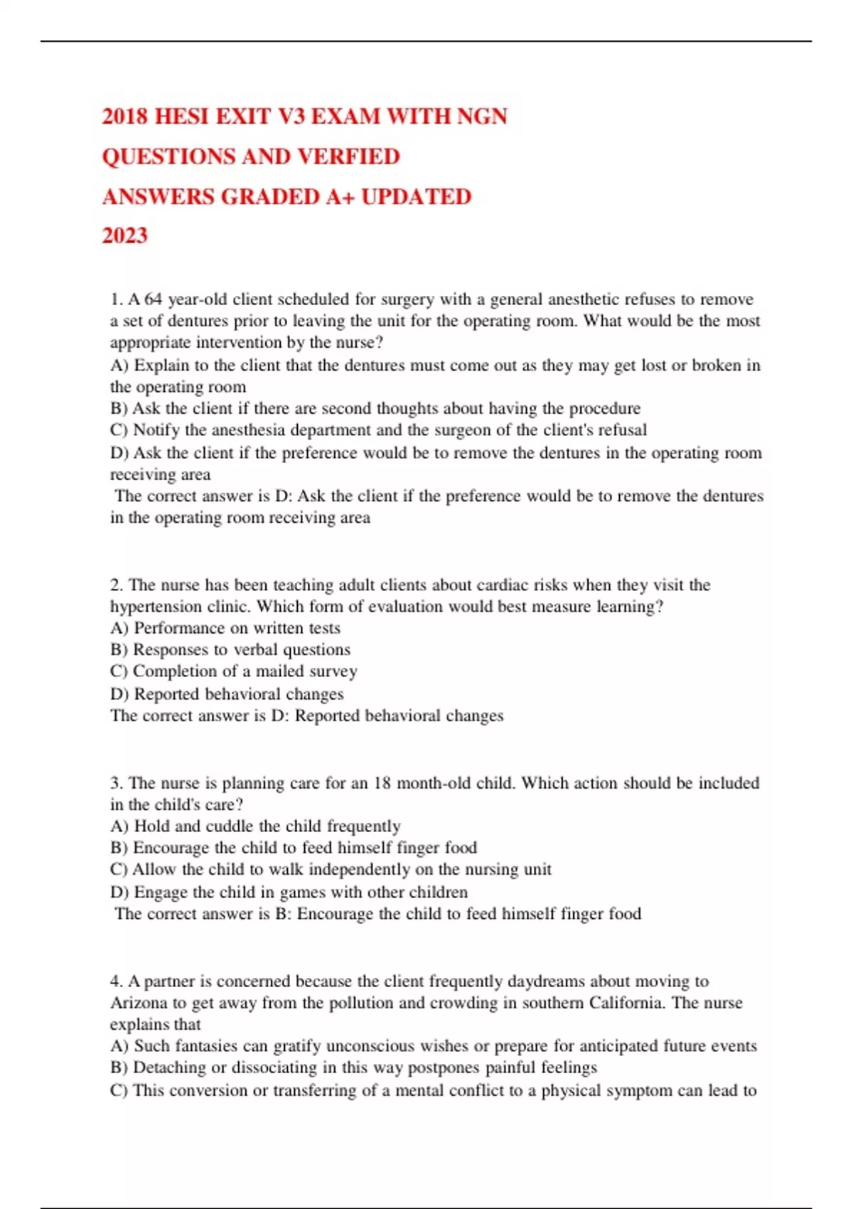 2018 HESI EXIT V3 EXAM WITH NGN QUESTIONS AND VERFIED ANSWERS GRADED A+ UPDATED 2023