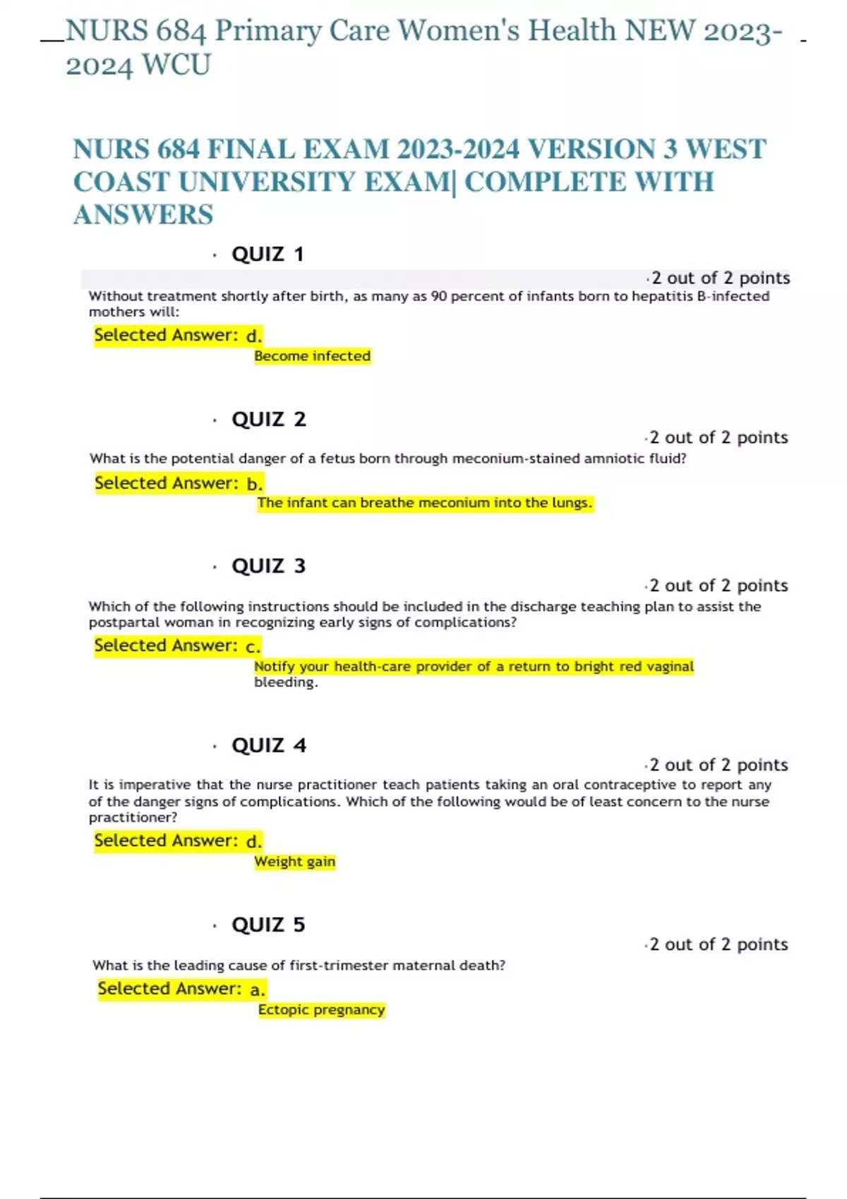NURS 684 Primary Care of Women's Health West Coast University 2025 Midterm and Final Exams Graded A