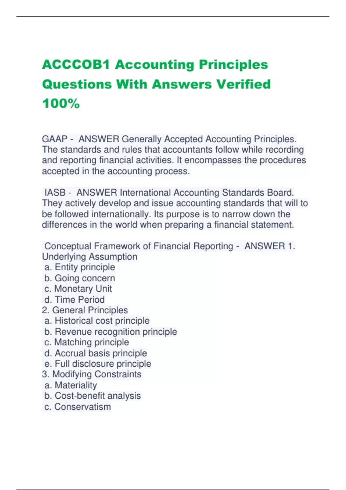 bundle for Accounting Principles and Formulas Questions With Verified Answers | UPDATED