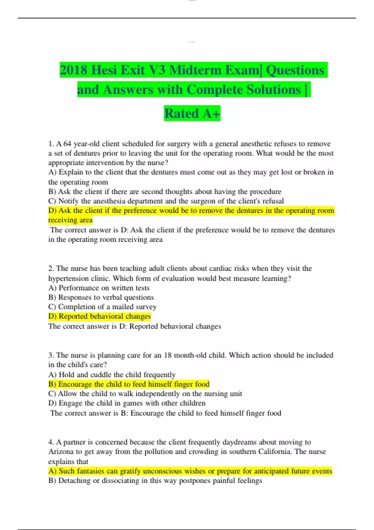 Hesi Exit V5 |Nursing Midterm Exam|160 Questions and Correct Answers A+ 2 Exam (elaborations) 2018 Hesi Exit V3 Midterm Exam| Questions and Answers with Complete Solutions | Rated A+ 3 Exam (elaborations) 2023 Hesi Exit V5 |Nursing Midterm Exam Question And Verified Answers (Graded+)