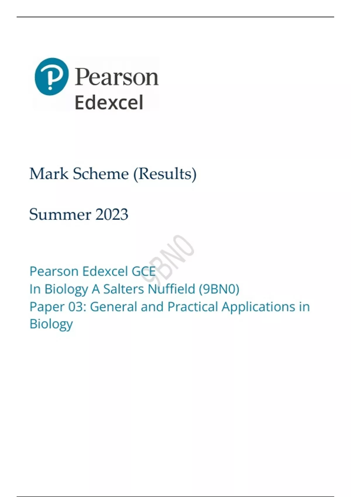 Pearson Edexcel GCE Biology A Salters Nuffield Paper 03 Mark scheme for June 2023