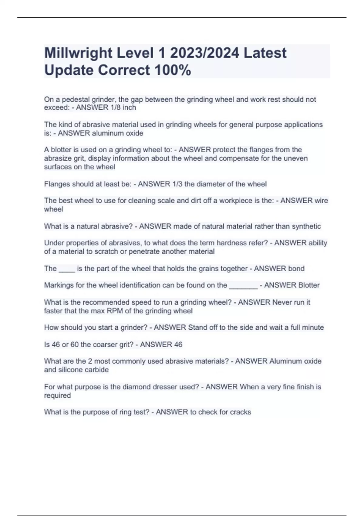 Millwright Level 1 2023/2024 Latest Update Correct 100Millwright Level 1 2023/2024 Latest Update Correct 100%COMPLETE FULL PACK SOLUTIONS EXAM BUNDLEMillwright Level 1 2023/2024 Latest Update Correct 100%COMPLETE FULL PACK SOLUTIONS EXAM BUNDLEMillwright Level 1 2023/2024 Latest Update Correct 100%COMPLETE F%COMPLETE FULL PACK SOLUTIONS EXAM BUNDLE