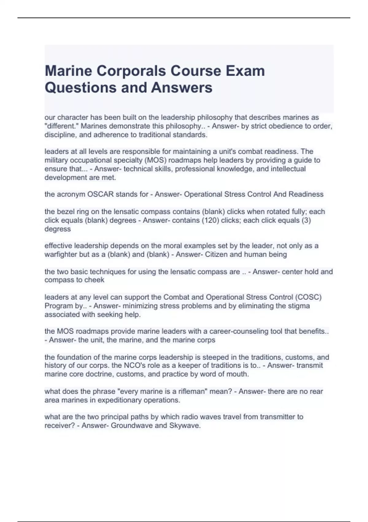 Marine Corporals Course Exam Questions and Answers 2 Exam (elaborations) Cpls Course Test 3 Questions with correct Answers 3 Exam (elaborations) cpls course test 2 questions and answers 4 Exam (elaborations) Cpls Course Test 2 (2024) Questions and Answers 5 Exam (elaborations) Cpls Course Study Guide 1 with complete solutions 6 Exam (elaborati