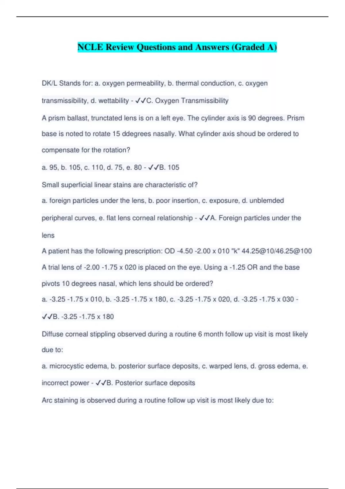 NCLE Contact Lens Exam 2 Questions with correct Answers