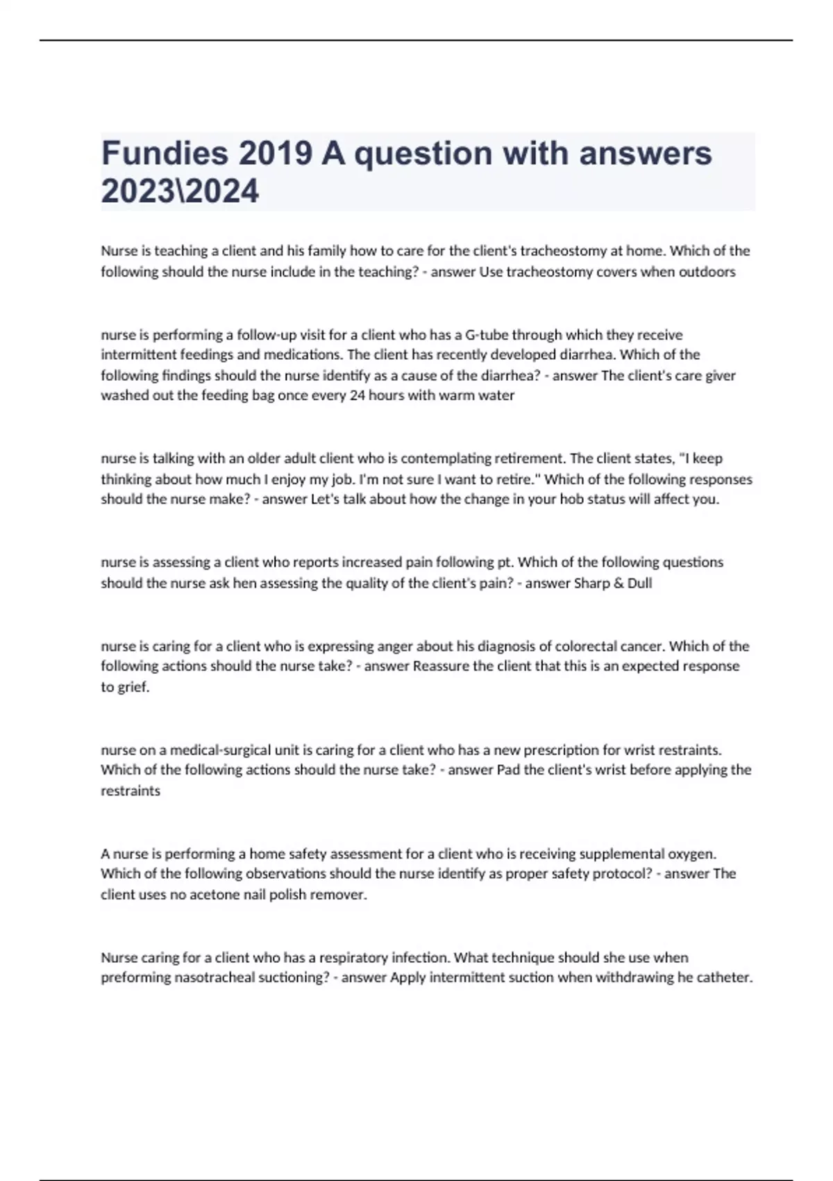 1 Exam (elaborations) ATI RN Fundamentals Online Practice 2019 A with NGN question correctly answered 2 Exam (elaborations) ATI Fundamentals Retake question and answer well correctly answered rated A+ 2023/2024 3 Exam (elaborations) Fundamentals Exam 1 ATI practice questions fully solved 2023/2024 4 Exam (elaborations) Fundamentals proctored ATI