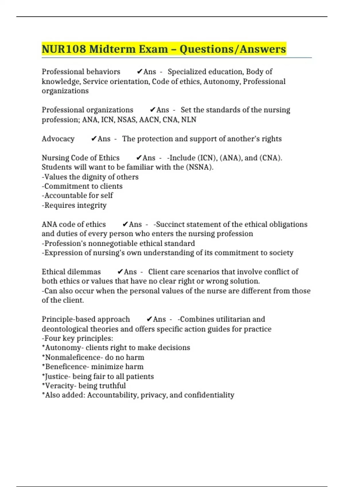 BUNDLE::: NUR 108 EXAMS COMPILED TOGETHER (LATEST UPDATE)