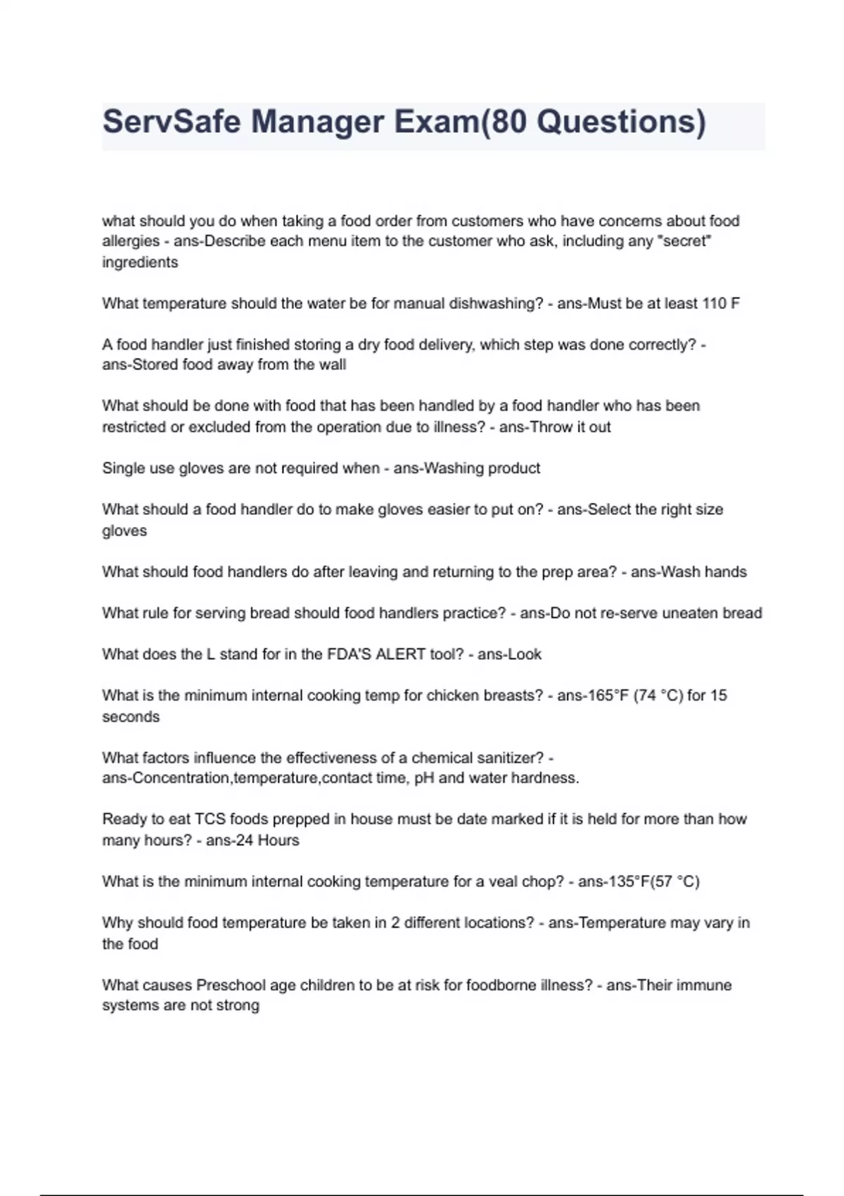 STUDY GUIDE 1: ServSafe Manager Exam (80 Questions)