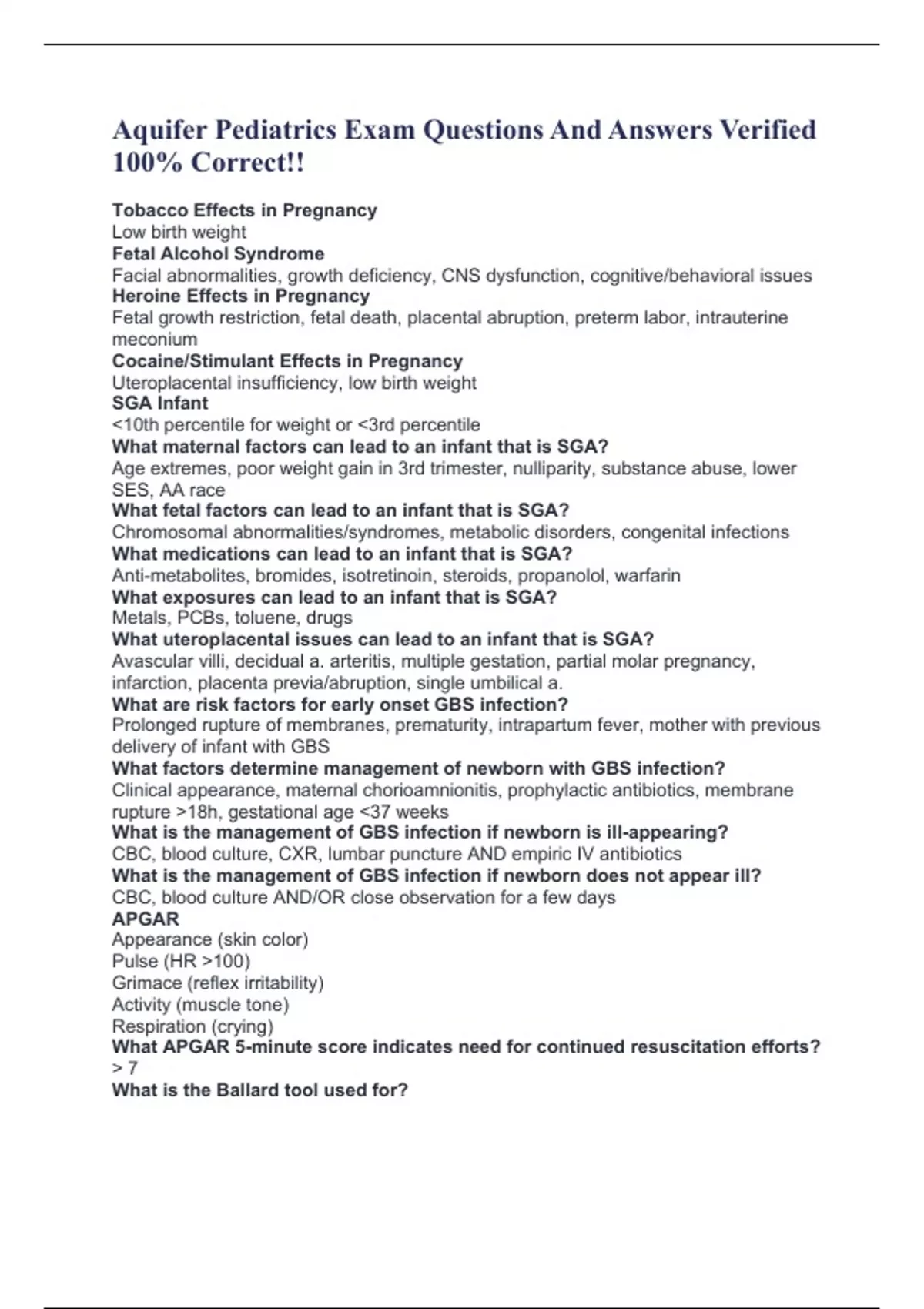 Aquifer Pediatrics Exam Questions And Answers Verified 100% Correct!! Pediatrics Aquifer Questions With 100% Correct Answers. Aquifer Pediatrics End of Case Questions With Complete Solutions Graded A+ Peds Aquifer Cases -2023 Latest Questions With Correct Answers Already Passed!! Aquifer Peds Questions & Answers Verified 100% Correct!!