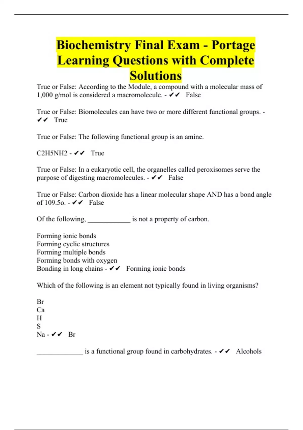 Portage Learning Final Exam Bundle