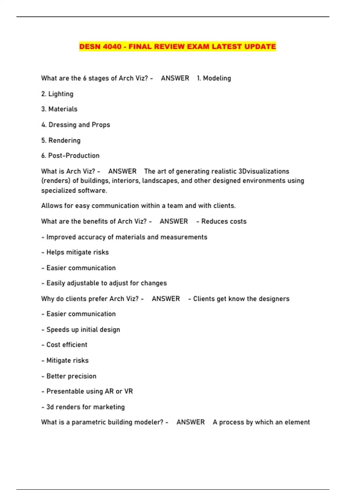 DESN 4040 - FINAL REVIEW EXAM LATEST UPDATE