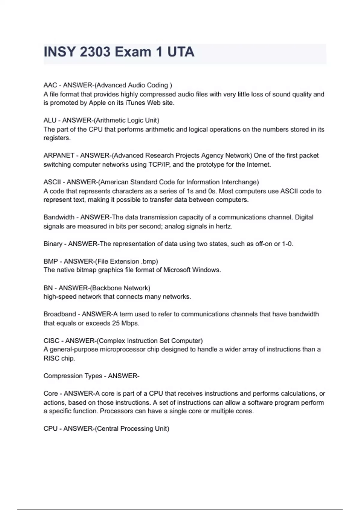 UTA INSY 2303 EXAM 1,2, 3 AND FINAL EXAMS LATEST REAL EXAM QUESTIONS AND CORRECT ANSWERS|AGRADE