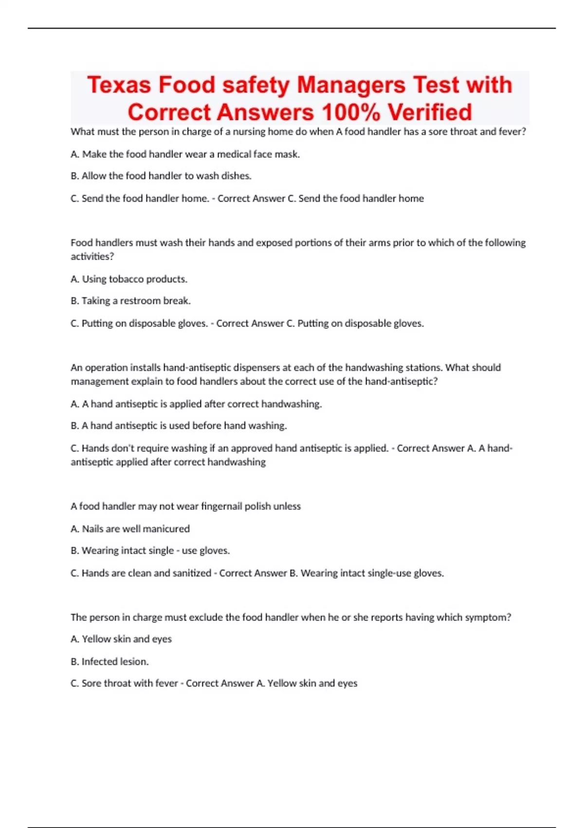 Food Manager Exam Questions with 100% Verified Correct Answers Graded A+