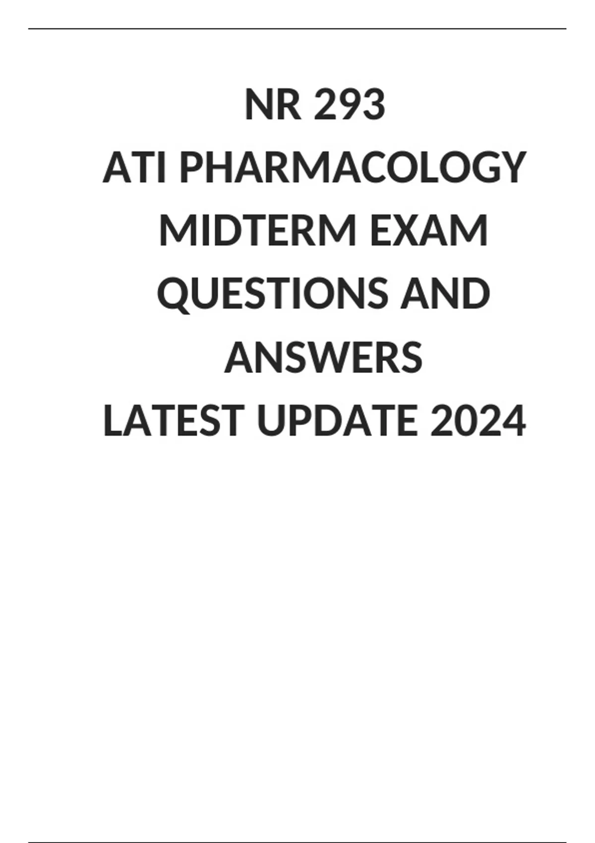 2024 NR 293 ATI PHARMACOLOGY MIDTERM EXAM QUESTIONS AND ANSWERS LATEST UPDATE