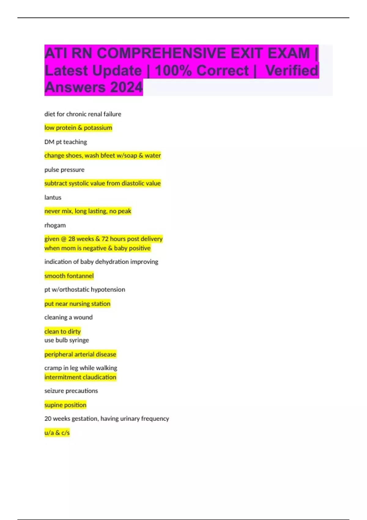 ATI RN COMPREHENSIVE EXIT EXAM | Latest Update | 100% Correct | Verified Answers 2024 HESI 799 RN Exit Exam | Latest Update | Verified | 100% Correct Answers ATI EXIT Exam STUDY GUIDE 2024 With Complete Solution ATI COMPREHENSIVE EXIT FINAL Exam With Verified And 100% Correct Answers HESI RN Exit Exam 2024 With Verified And 100% Correct Answers