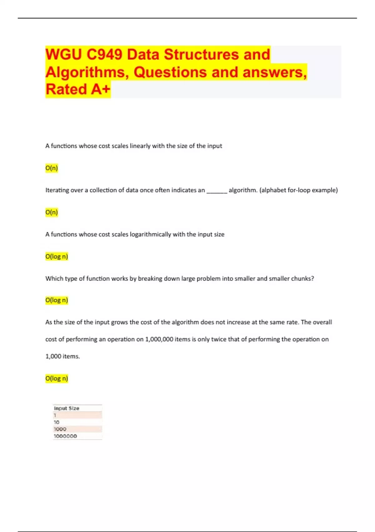 WGU C949 Data Structures and Algorithms Questions with 100% Correct Answers | Latest Update 2024 | Verified