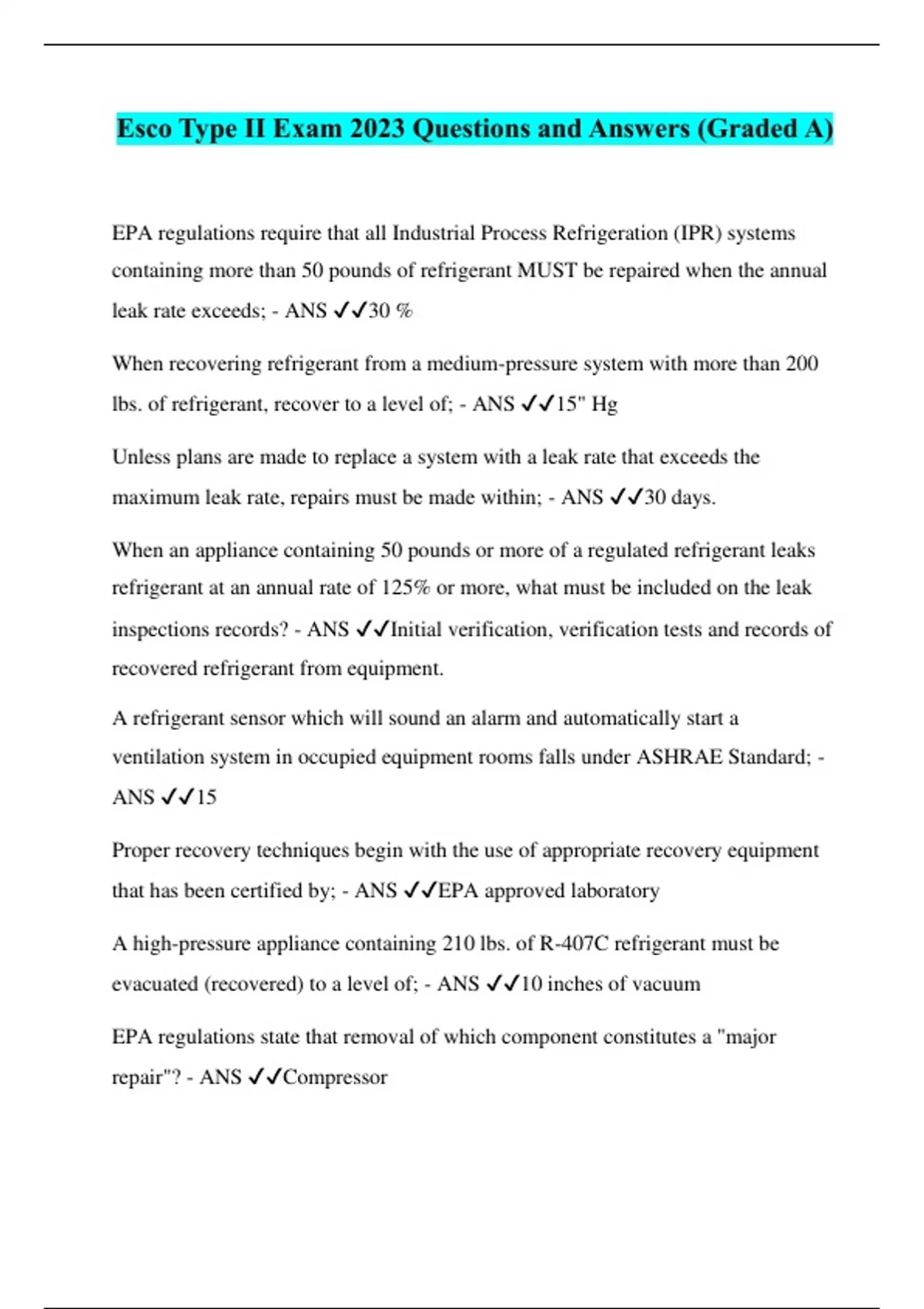 Esco Type II Exam 2023 Questions and Answers (Graded A)
