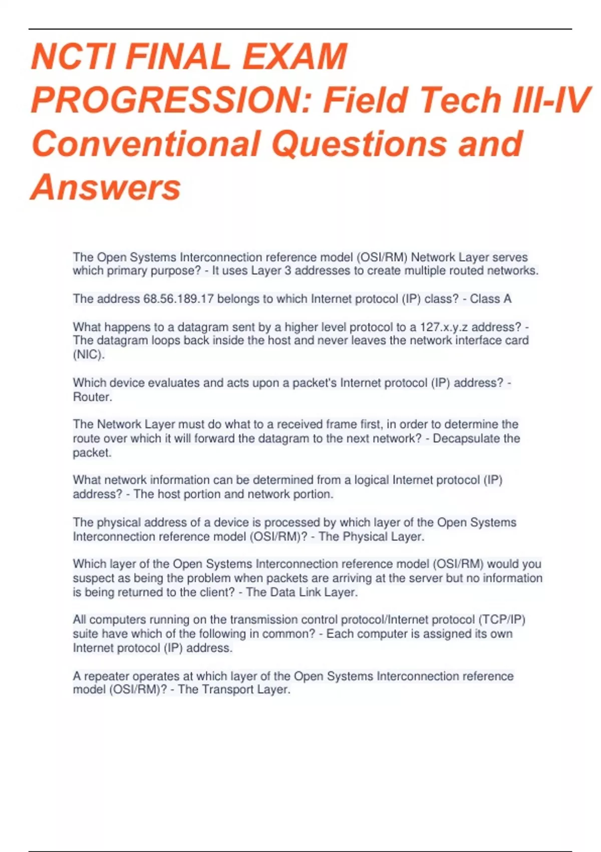 NCTI Field Tech Exam BUNDLE Questions With 100% Correct Answers