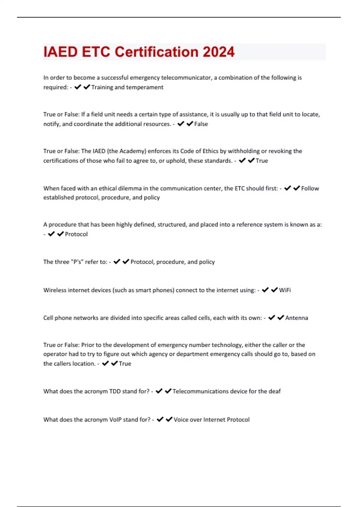 IAED ETC Certification 2024 Questions With Correct Answers Already Passed!!