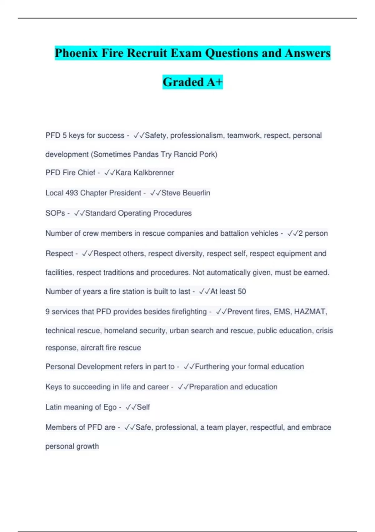 Phoenix Fire Department Bundled Exams with Complete Solution | Download to Score A | Verified
