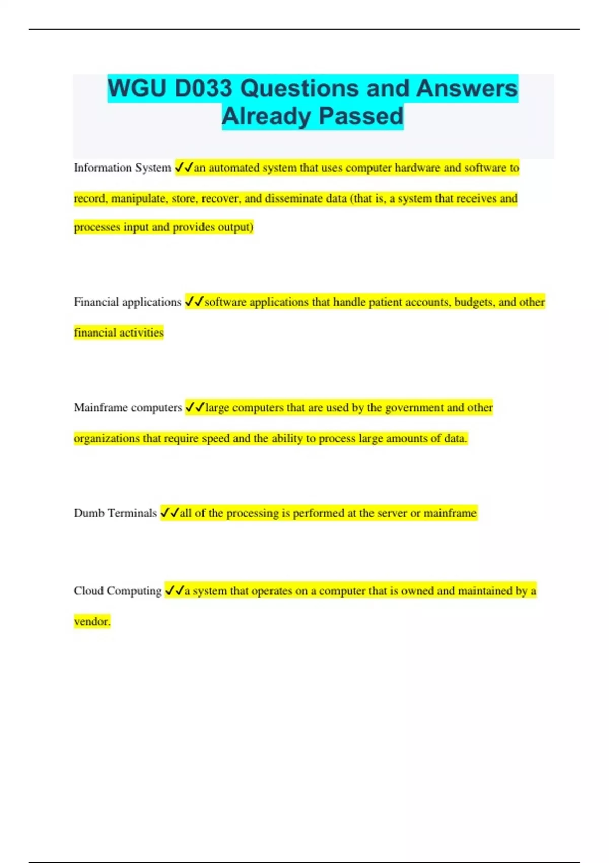 WGU D033 Bundled Exams Questions and Answers Latest Versions Already Passed