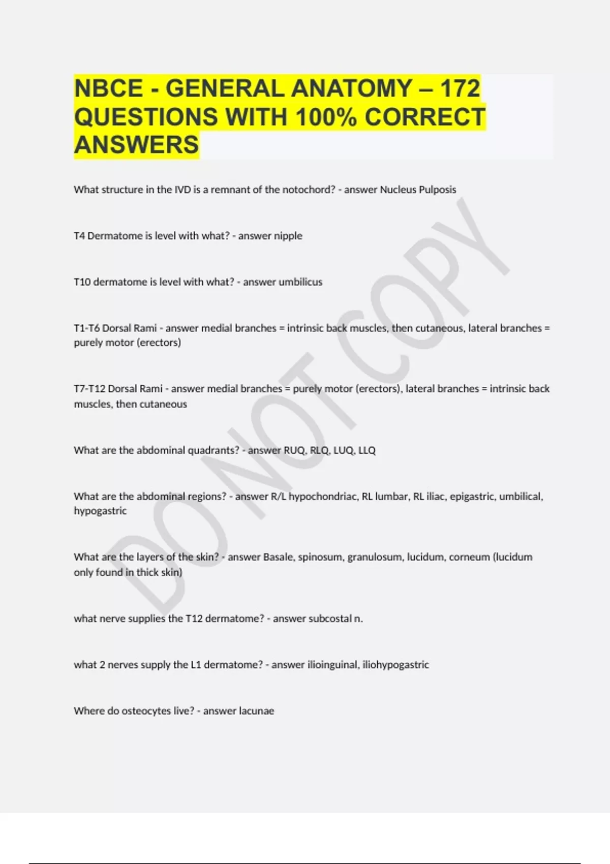 NBCE I - GENERAL ANATOMY WITH VERIFIED SOLUTIONS ALREADY GRADED A+