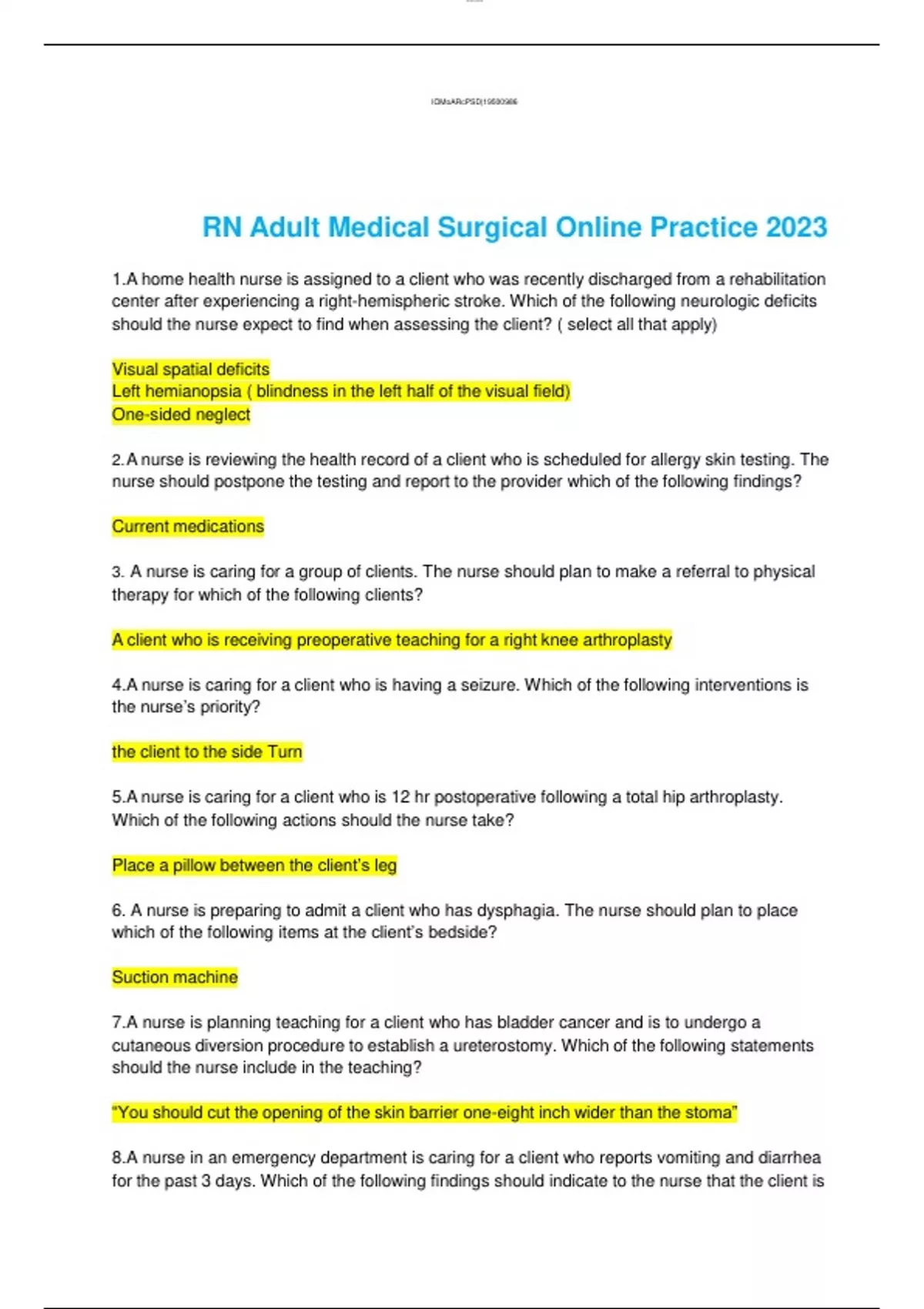 bundle for RN Adult Medical Surgical Online Practice 2023
