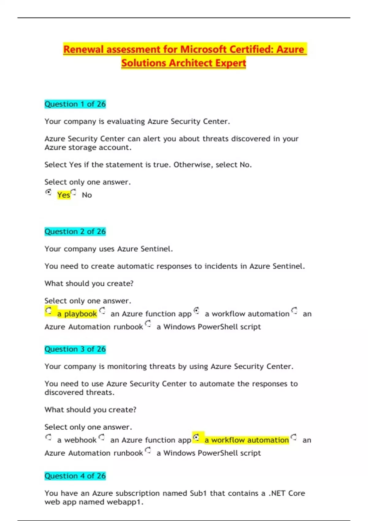Bundle for Renewal assessment for Microsoft Certified: Azure Solutions Architect Expert
