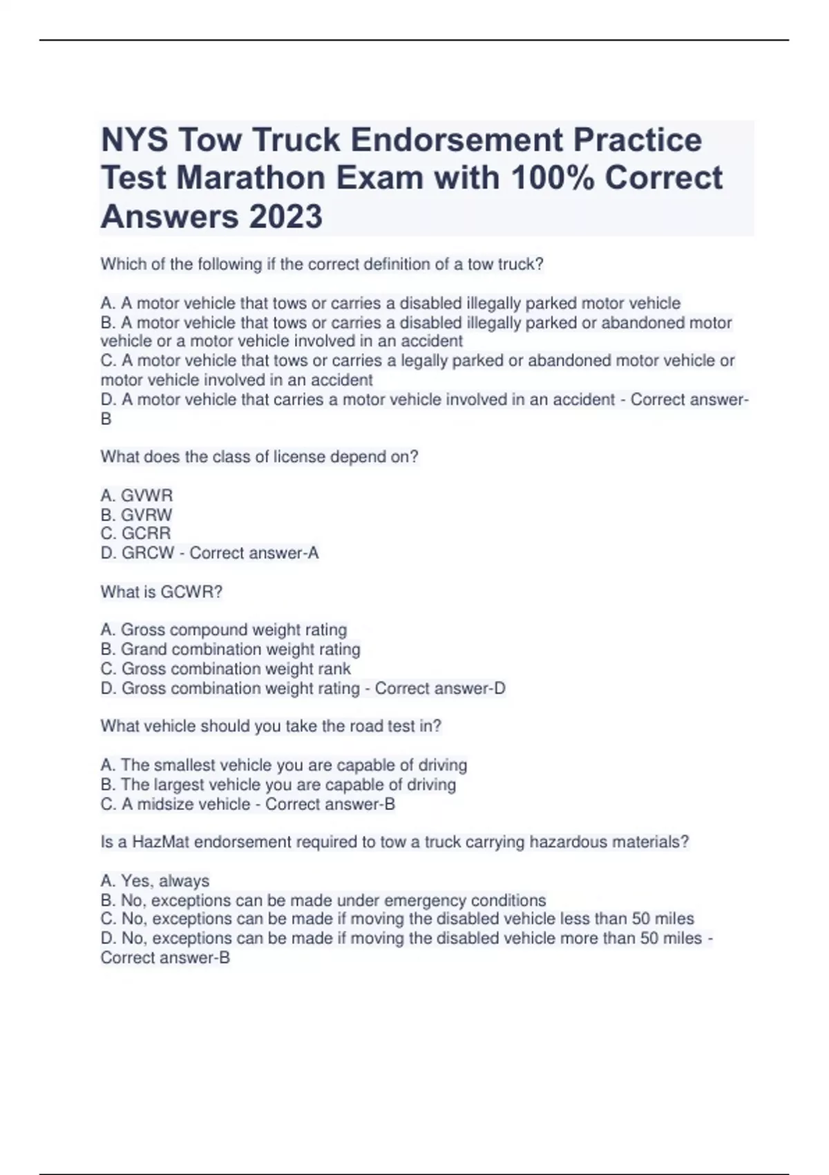 ALL NYS Tow Truck Endorsement Practice Tests 2023/24