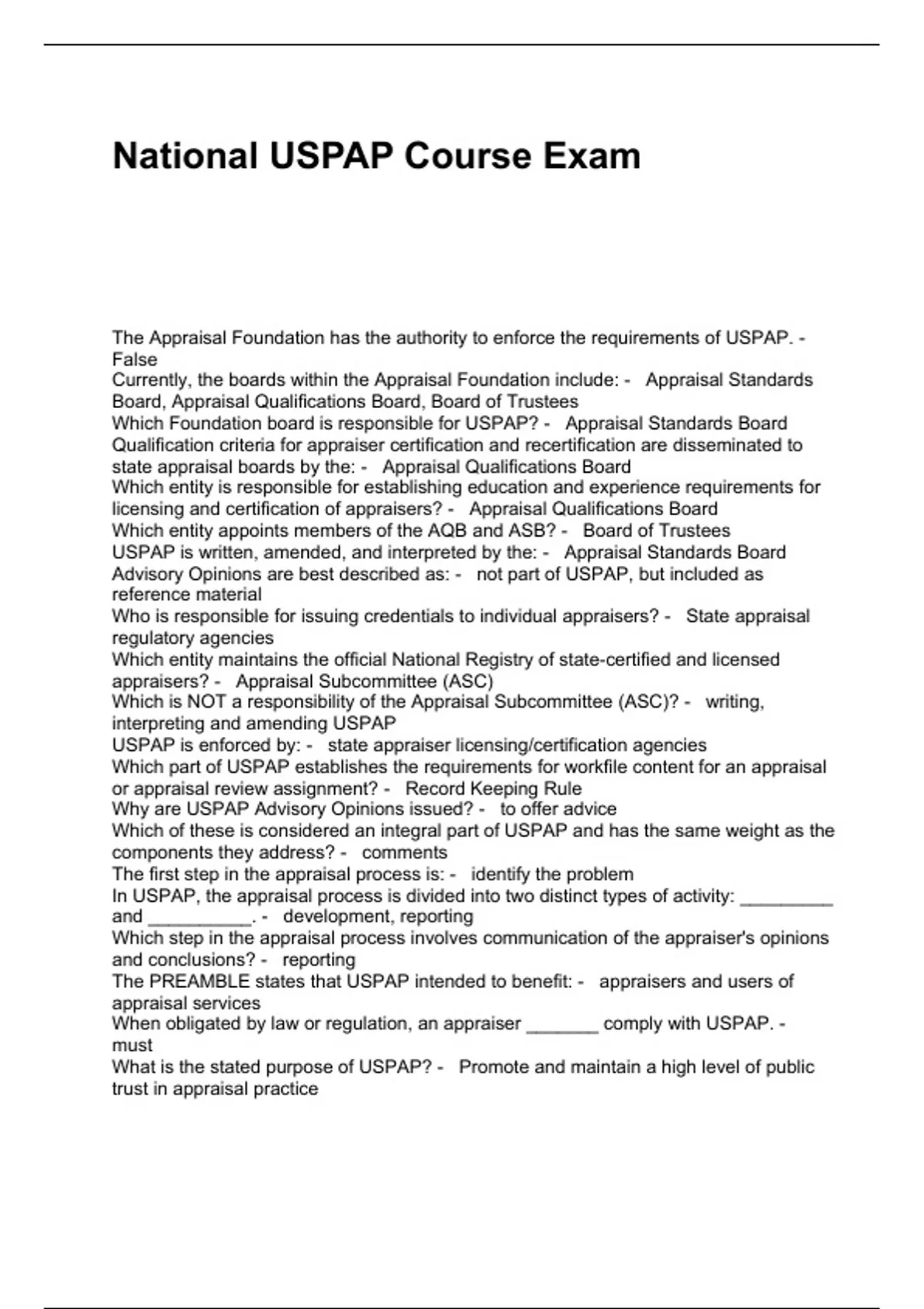 Package deal for USPAP Final Exam With 100% Correct Answers 2023/2024