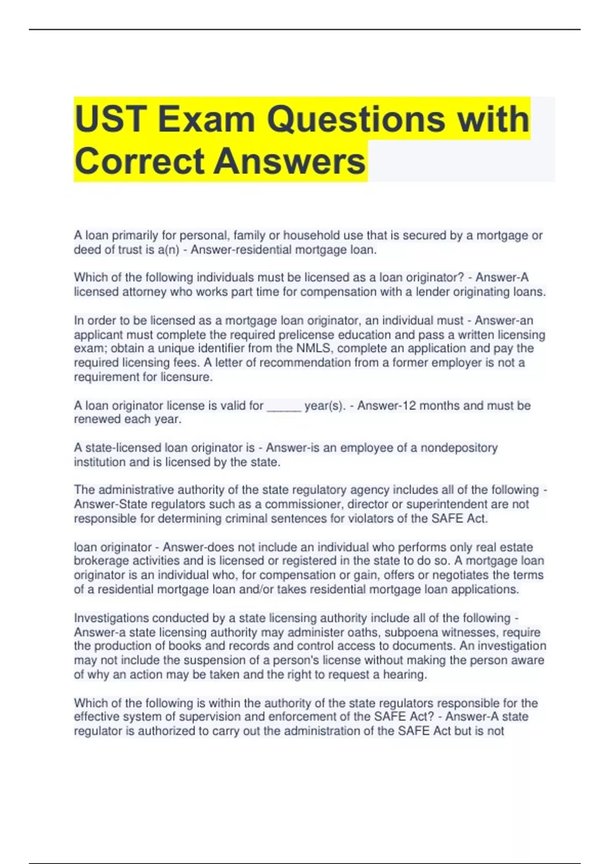 Bundle For UST Exam Questions with Correct Answers