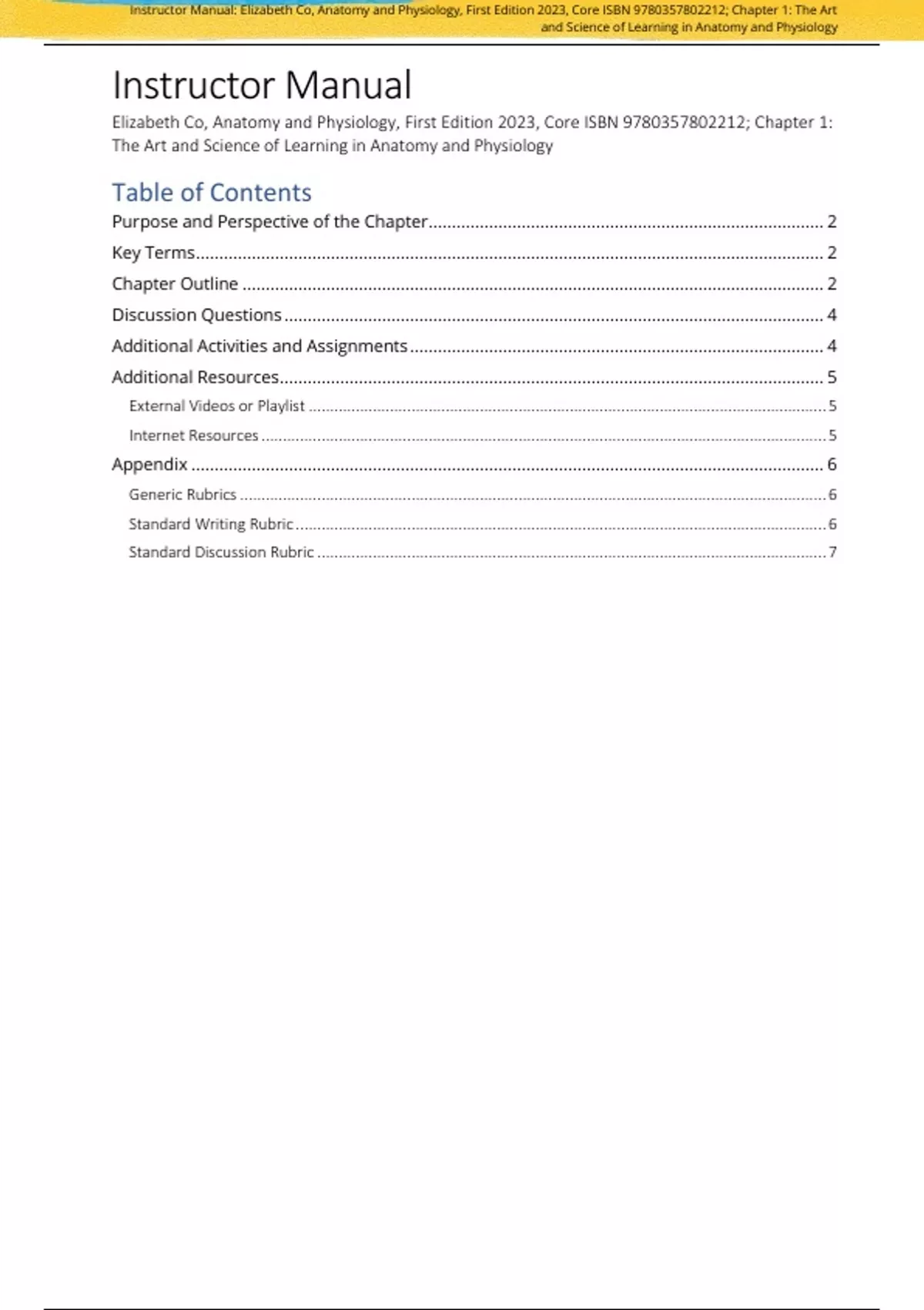 Anatomy & Physiology 1st Edition By Elizabeth Co (Instructor Manual with Test Bank All Chapters, 100% Original Verified, A+ Grade)