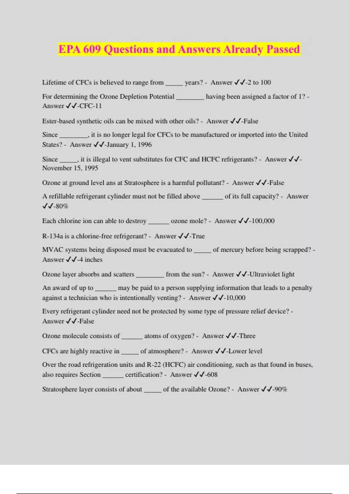 EPA 609 Bundled Exams Questions and Answers | 100% Verified & Updated 2024