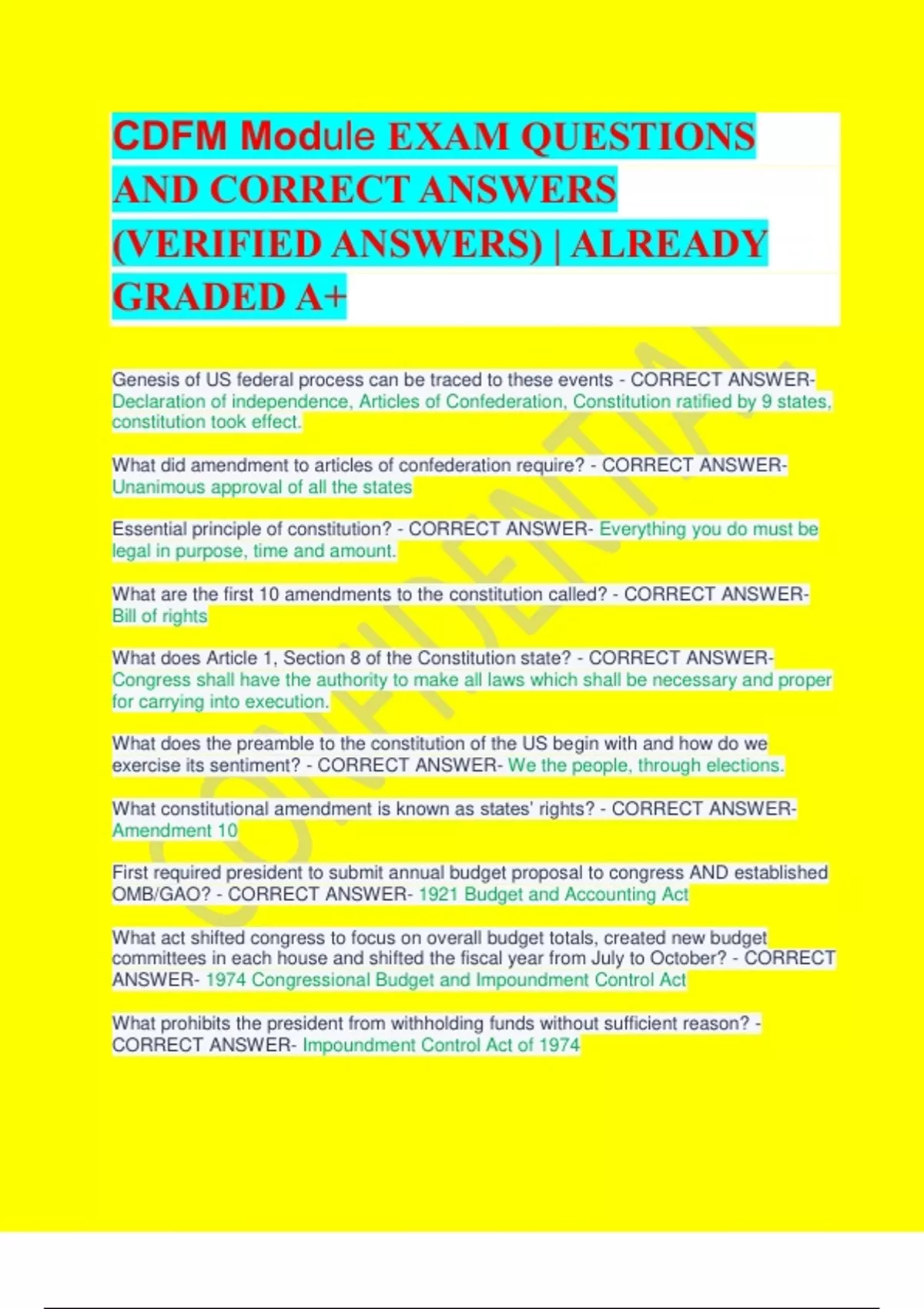 1 Exam (elaborations) CDFM 2023 Real Exam Questions with Complete Solutions 2 Exam (elaborations) CDFM Module Exam Questions with Correct Answers 3 Exam (elaborations) CDFM Module 3 Fiscal Law 2023 Exam Questions and Answers 4 Exam (elaborations) CDFM 3.1 Fiscal Law Exam Questions with Correct Answers