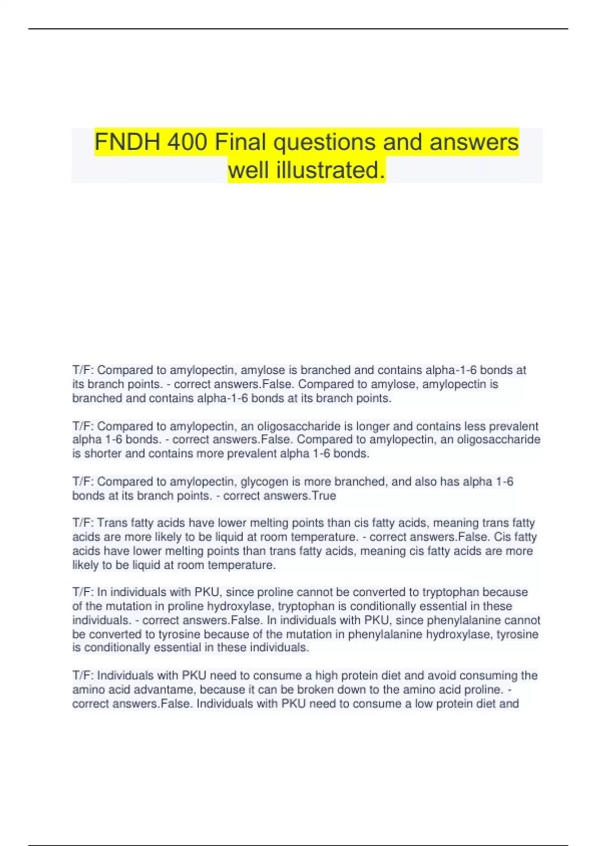 FNDH 400 Bundled Exam questions and answers.