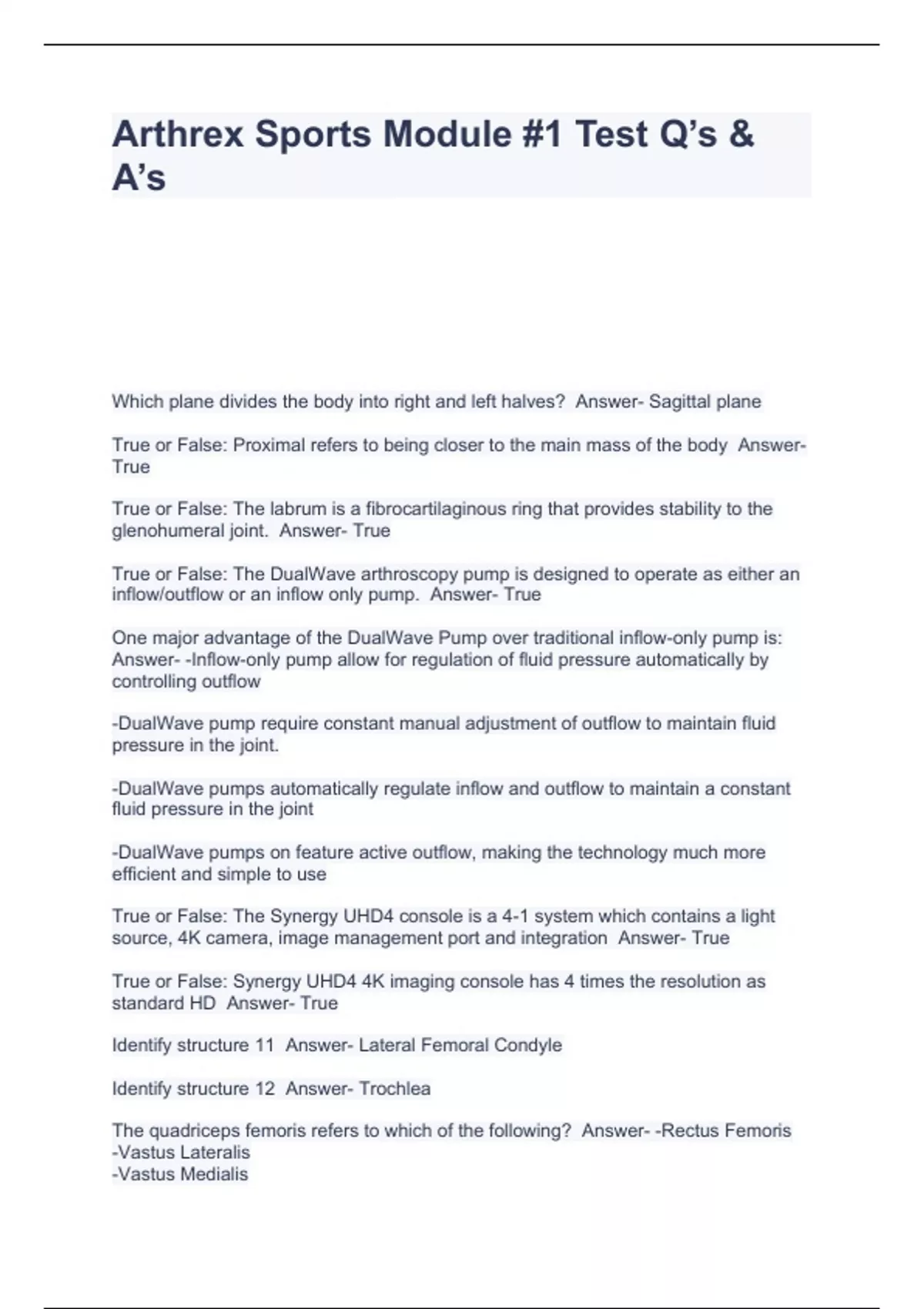 Arthrex Sports Module #1 Test Q’s & A’s,Arthrex Sports IOT Questions With Complete Solutions Graded A+,Arthrex Sports Module #5 Test Quizzes & Ans Already Passed!!,Arthrex Sports Module #4 Test Questions With Correct Answers.,Arthrex Sports Module #6 Test Questions With 100% Correct Answers.,Arthrex Sports Medicine Onboarding Module #3 Test Quizzes