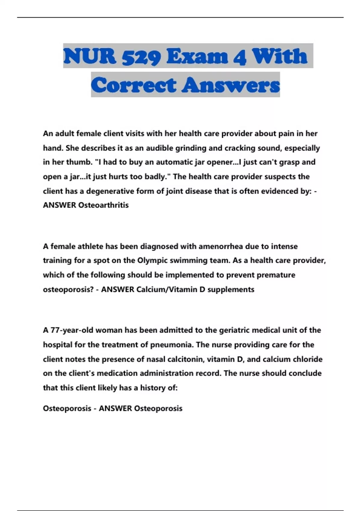 NUR 529 BUNDLED EXAMS WITH SOLUTION