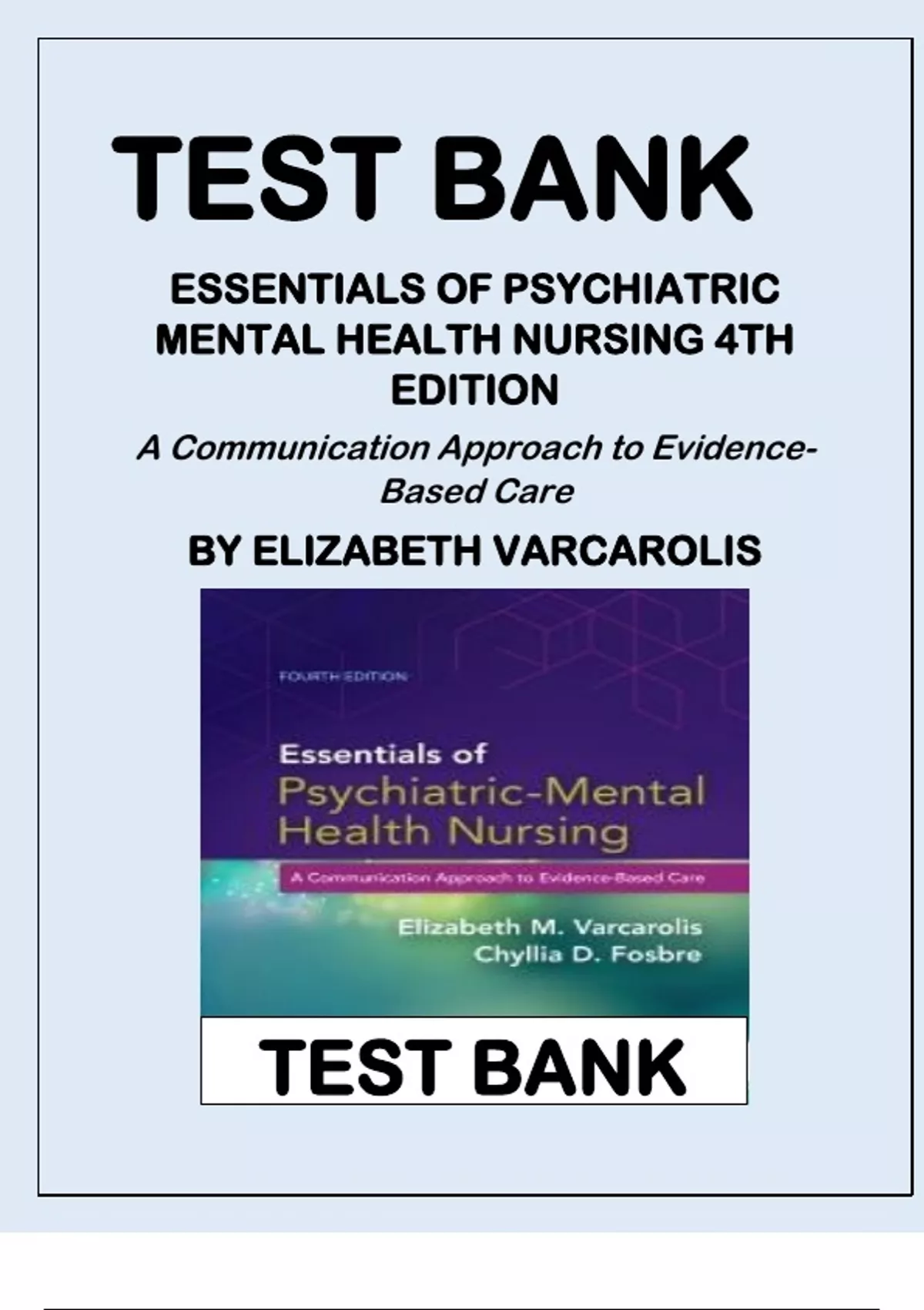 TEST BANK ESSENTIALS OF PSYCHIATRIC MENTAL HEALTH NURSING 4TH AND 5TH EDITION A Communication Approach to Evidence-Based Care Latest Verified Review 2024 Practice Questions and Answers for Exam Preparation, 100% Correct with Explanations, Highly Recommend