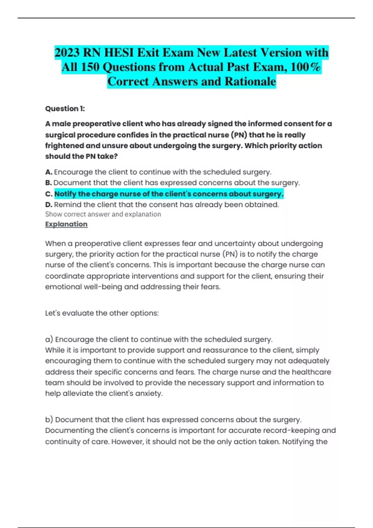 2023 RN HESI Exit V1, V2, & V3 Exam New Latest Version with All 150 Questions from Actual Past Exam, 100% Correct Answers and Rationale Bundle/ Package deal